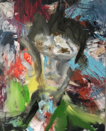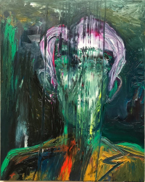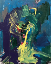 Fahar, Malerei, Öl auf Leinwand, Die Hauptfarbtöne sind blau und grün, hochformat. Kunst mieten.